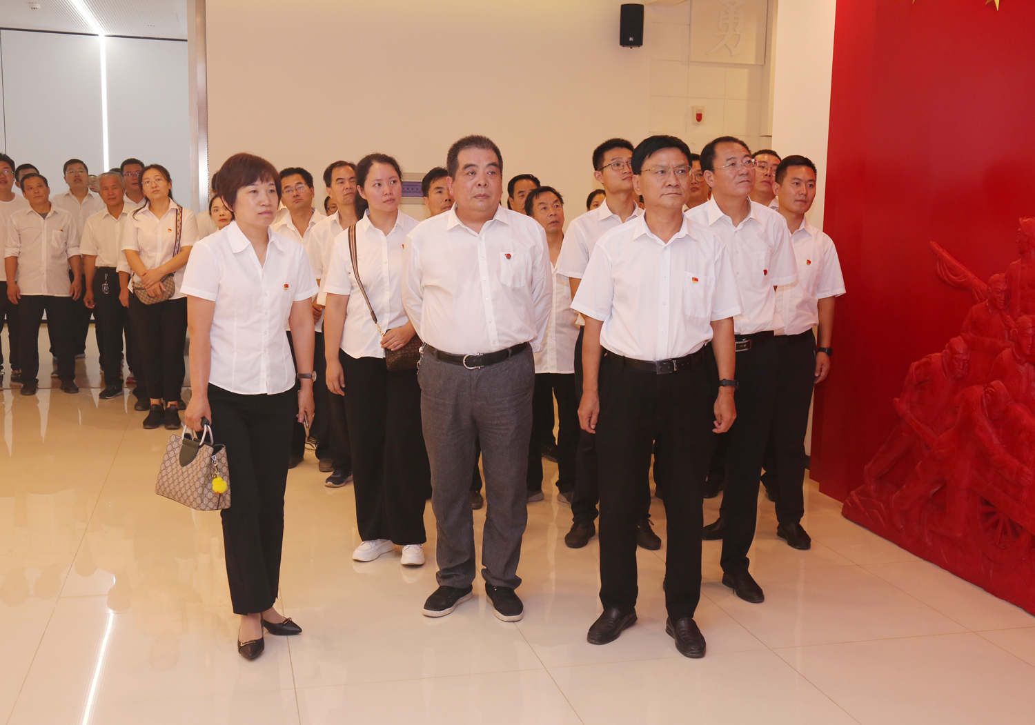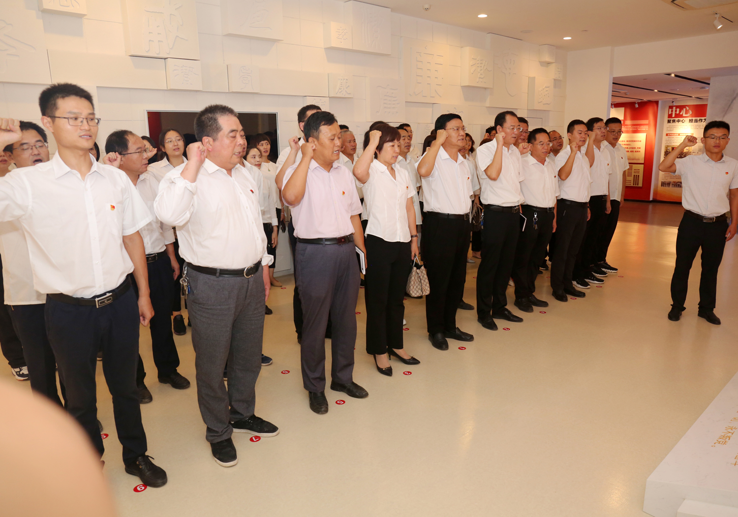 參觀結(jié)束后,全體黨員干部來到尾廳,面對(duì)鮮紅的黨旗莊嚴(yán)宣誓,用飽滿的熱情重溫了入黨初心。