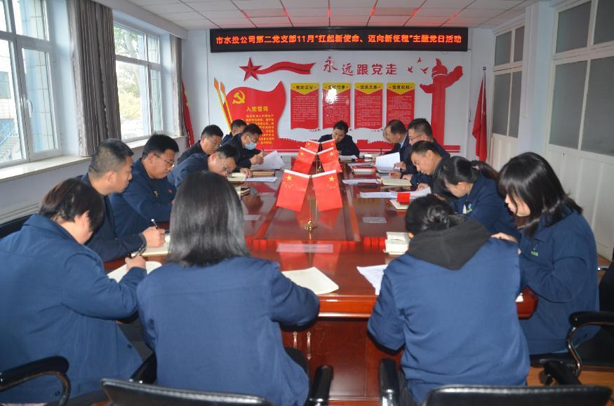 按照市水投公司黨委統(tǒng)一部署要求,第二黨支部于2022年11月7日下午組織全體黨員、積極分子、群眾代表開(kāi)展了“扛起新使命、邁向新征程”主題黨日活動(dòng),會(huì)議由支部書(shū)記吳爭(zhēng)兵主持。