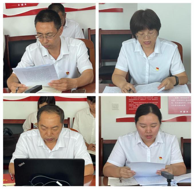 在研學(xué)習(xí)近平新時(shí)代中國(guó)特色社會(huì)主義思想環(huán)節(jié),支委帶領(lǐng)大家集中學(xué)習(xí)了習(xí)近平總書記系列重要講話精神、第13期、第14期《求是》雜志刊發(fā)的習(xí)近平總書記重要文章、省委書記藍(lán)佛安在省委常委會(huì)會(huì)議暨省委主題教育領(lǐng)導(dǎo)小組會(huì)議上的講話精神、中共山西省委十二屆六次全體會(huì)議精神、市委書記丁小強(qiáng)在五屆市委第82次常委會(huì)(擴(kuò)大)會(huì)議上的講話精神、中共運(yùn)城市第五屆委員會(huì)第五次全體會(huì)議決議精神、中共運(yùn)城市紀(jì)律檢查委員會(huì)關(guān)于10起黨員干部“吃拿卡要”破壞營(yíng)商環(huán)境典型案件的通報(bào)。會(huì)議還公開了支部7月份黨務(wù)工作和學(xué)習(xí)強(qiáng)國(guó)積分情況。