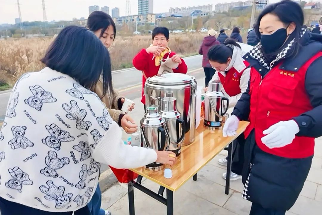 ▲市水投公司設立黨員先鋒崗,為游客提供免費熱水服務