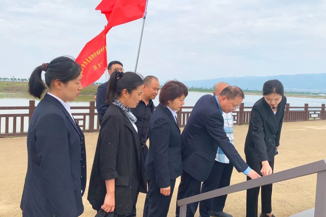 ▲公司黨員志愿者在鹽湖22號堤埝接待調研學習團隊