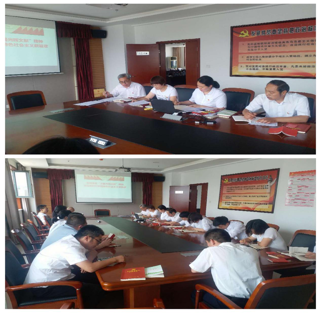 會(huì)上黨員集中繳納黨費(fèi)、齊誦《黨章》、集中學(xué)習(xí)習(xí)近平新時(shí)代中國特色社會(huì)主義思想,其中學(xué)習(xí)委員郭紅爭同志帶領(lǐng)大家重點(diǎn)學(xué)習(xí)了習(xí)近平總書記5月11日至12日在山西考察時(shí)的重要講話精神以及全國“兩會(huì)”精神;紀(jì)檢委員王偉東同志傳達(dá)學(xué)習(xí)了中共運(yùn)城市紀(jì)律檢查委員會(huì)《關(guān)于市人防辦公室失職瀆職腐敗窩案的通報(bào)》、《關(guān)于6起公職人員違規(guī)參與借貸活動(dòng)典型案例的通報(bào)》和《中共運(yùn)城市委巡察工作領(lǐng)導(dǎo)小組關(guān)于2016年以來市委巡察發(fā)現(xiàn)共性問題的情況通報(bào)》文件。