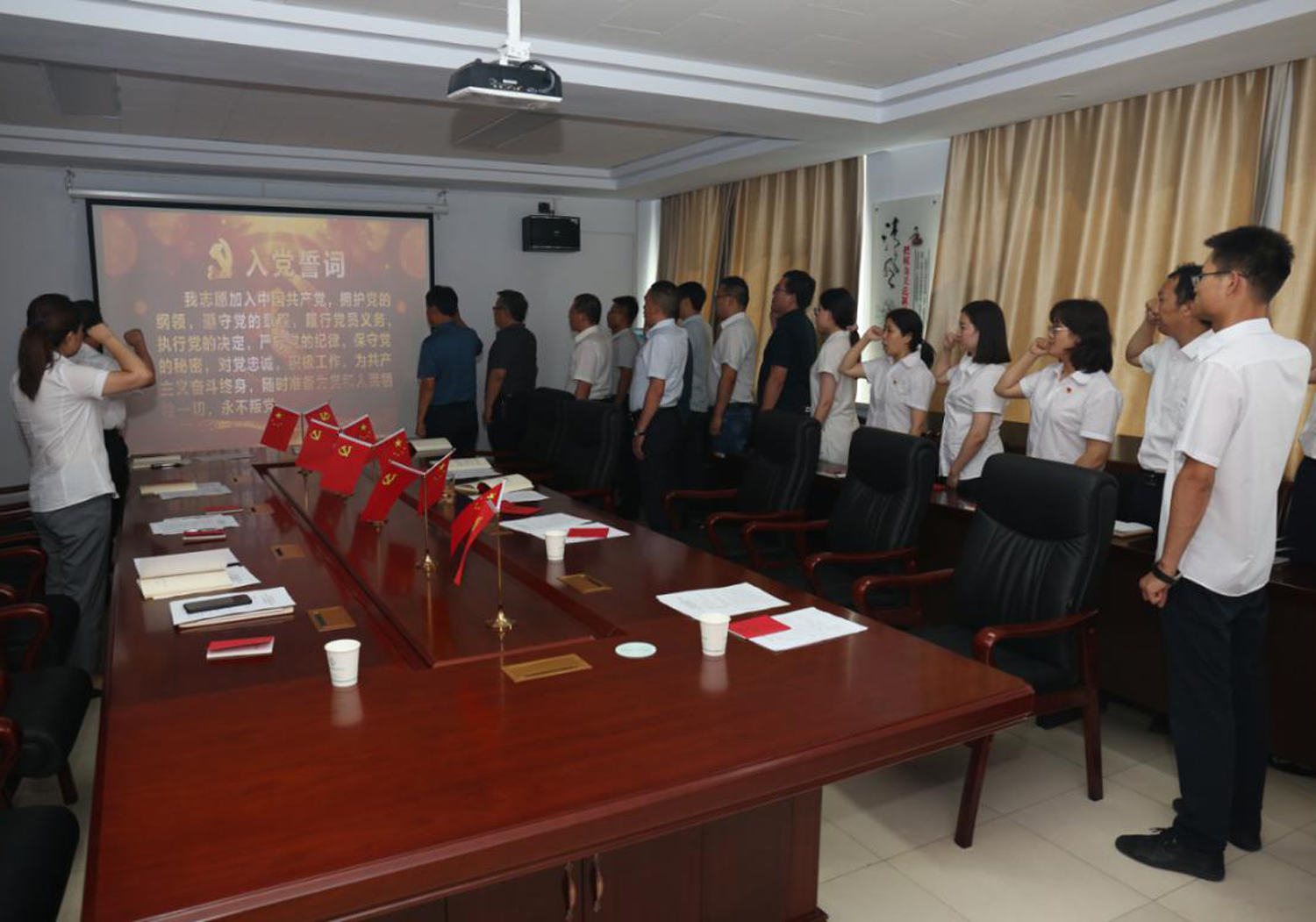 支部書記呂希汶領(lǐng)誓,全體黨員共同重溫了入黨誓詞。