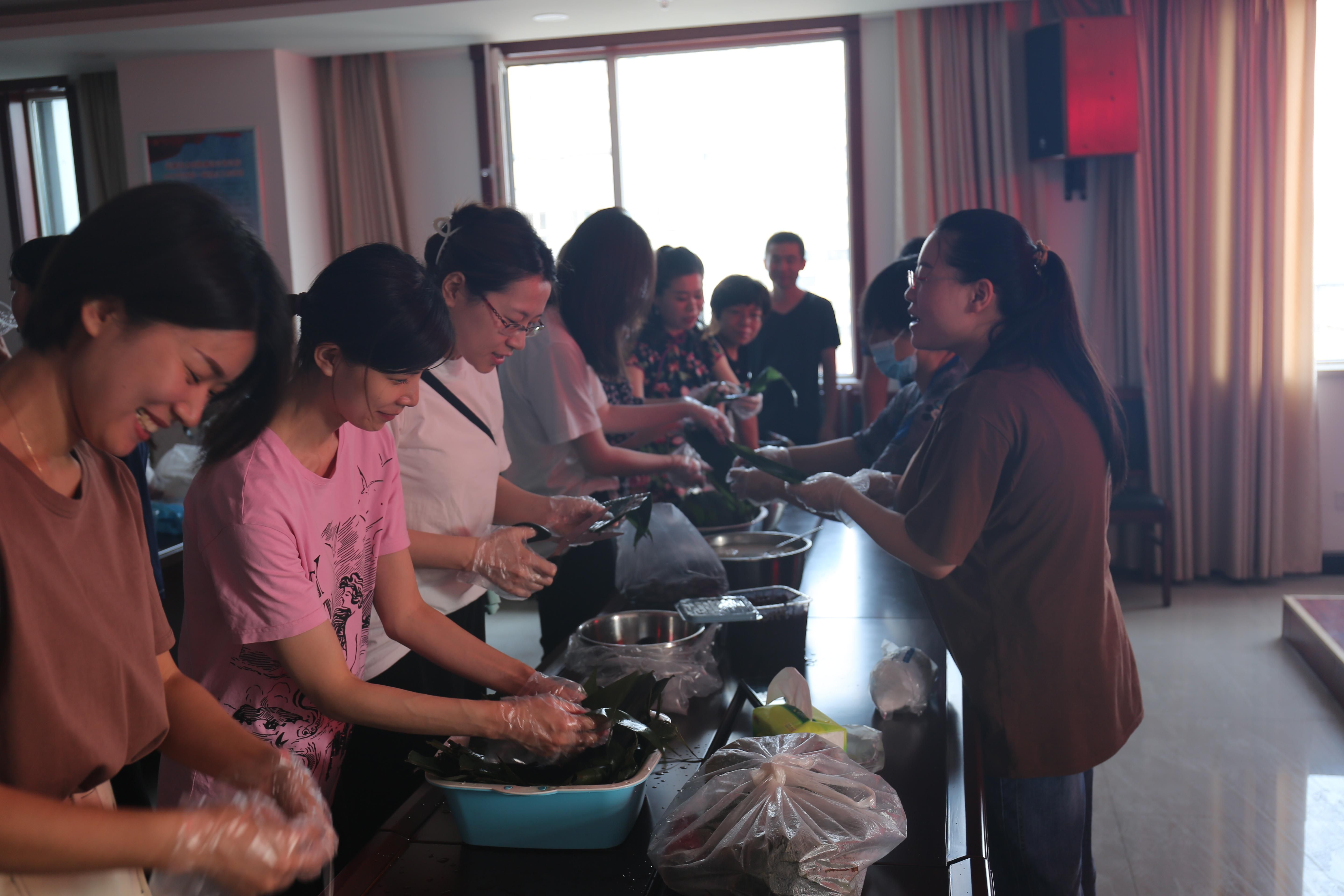 6月11日上午9時(shí),公司參加活動(dòng)的員工早早齊聚現(xiàn)場(chǎng),開始準(zhǔn)備?;顒?dòng)現(xiàn)場(chǎng)準(zhǔn)備了糯米、粽葉、紅棗等材料,全體員工圍在一起包粽子。雖然大多數(shù)員工是第一次嘗試,但在包粽“高手”的教導(dǎo)下,員工合作起來(lái)包粽子、蒸晉糕,你理粽葉、我包粽,你洗紅棗,我填米,大家積極踴躍,一片歡聲笑語(yǔ),不一會(huì)百十粽子和晉糕就已成型。包出粽子的形狀不一,有三角的有四角的,晉糕也是造型各異。伴隨著水蒸氣的沸騰,熱騰騰出鍋的粽子、晉糕,香氣襲人,大家品嘗著自己的勞動(dòng)成果,內(nèi)心充滿了喜悅。