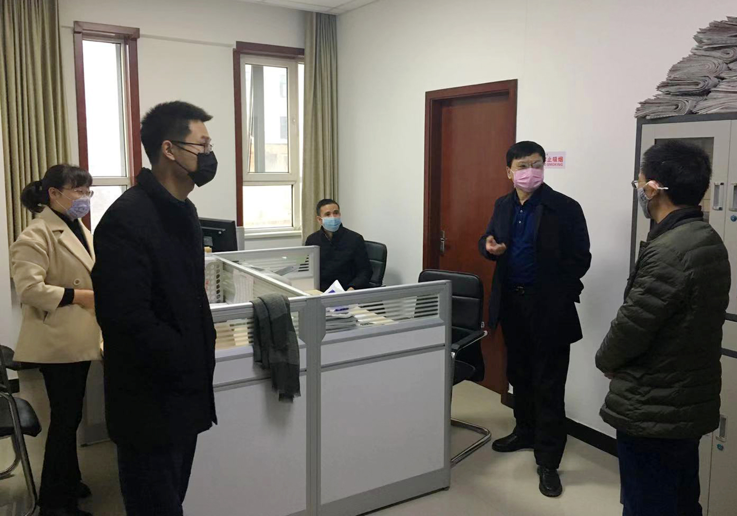 范永勝同志對往來人員登記表進行了詳細查看,要求工作人員要加強防范意識,做好消菌殺毒、通風(fēng)換氣等必要措施。