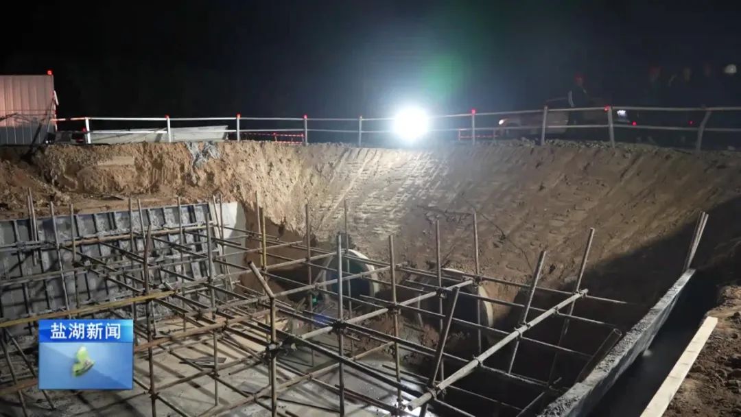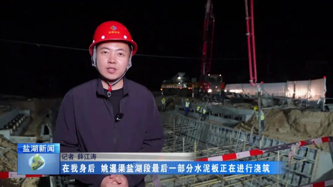 現(xiàn)在是4月28日晚上11時(shí)30分,在我身后,姚暹渠鹽湖段最后一部分水泥板正在進(jìn)行澆筑。澆筑完成后,全長(zhǎng)24.9公里的姚暹渠鹽湖段主體渠道將實(shí)現(xiàn)合龍,形成完整的過(guò)水通道,標(biāo)志著工程迎來(lái)關(guān)鍵的階段性勝利。